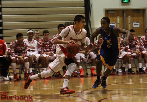 Chris Hovasapian’s baseline layup and subsequent free throw to complete a three-point play for Burroughs cut Muir’s lead to 62-59. After a Mustang miss from three-point range, the Indians called timeout to set up a play for point guard Steven Hubbell with 12.5 seconds left.