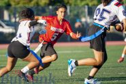 Alyssa Prachasaisoradej played quarterback for the Bears who shut out Lancaster 39-0 in the first-ever home flag football game in school history. (Photo by Xavier Dubon)
