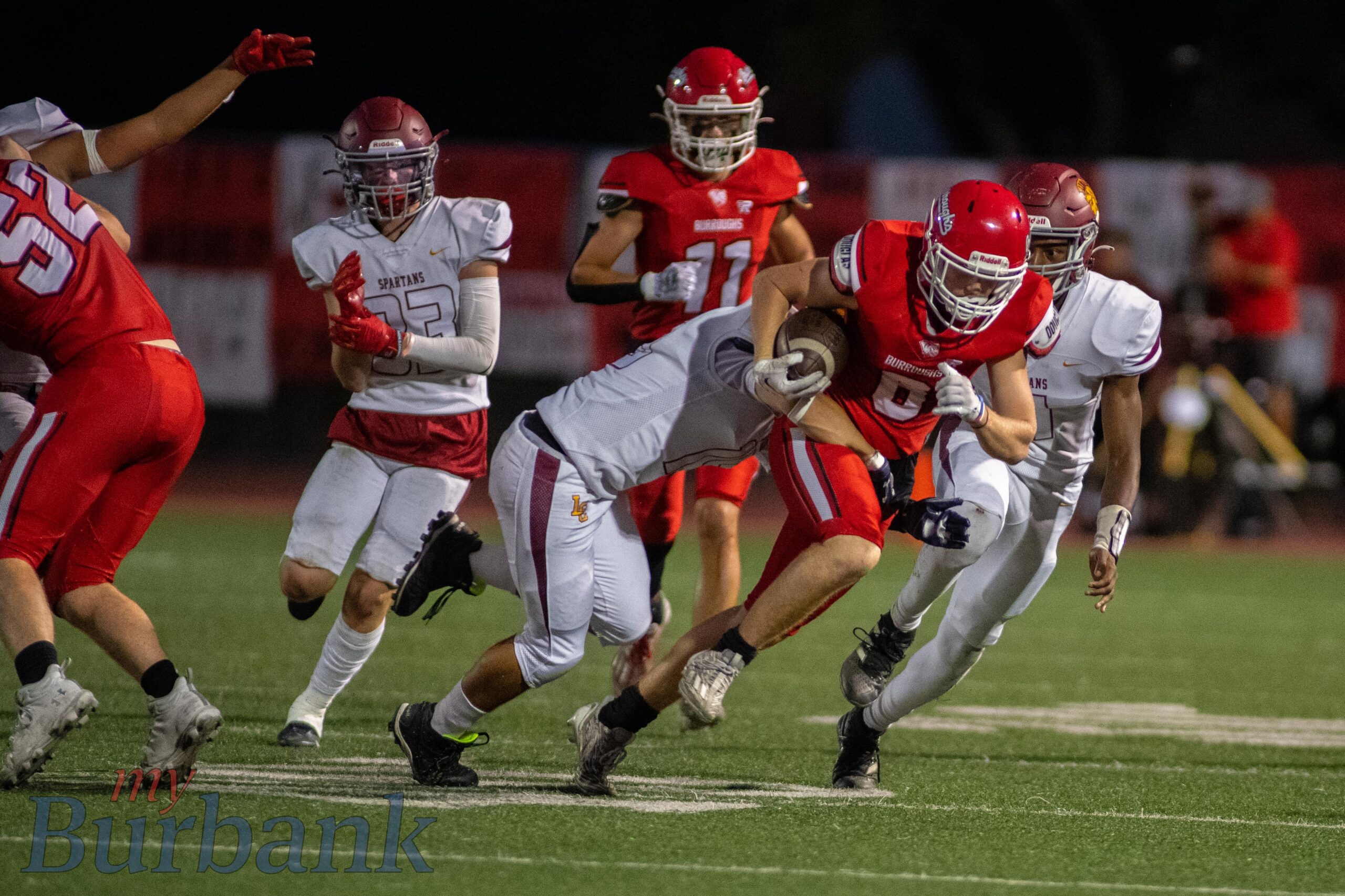 Burroughs’ lead expanded to 20-7 when senior wide receiver/outside linebacker Santiago Sanchez capped a 77-yard, 13-play excursion when he scored from a yard out and 1:36 showing in the second period.