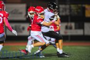 On the next to last play of the game, Venegas tossed a short pass to junior wide receiver/cornerback Arlen Aivzian (79 yards on four receptions), who then raced 65 yards into paydirt that cut the deficit to 22 points.