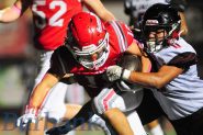 After missing several games with an injury, junior running back/defensive back Carson Shrode (31 yards on eight carries) contributed a two-yard scoring run with 8:18 left in the second period for a 14-0 edge.