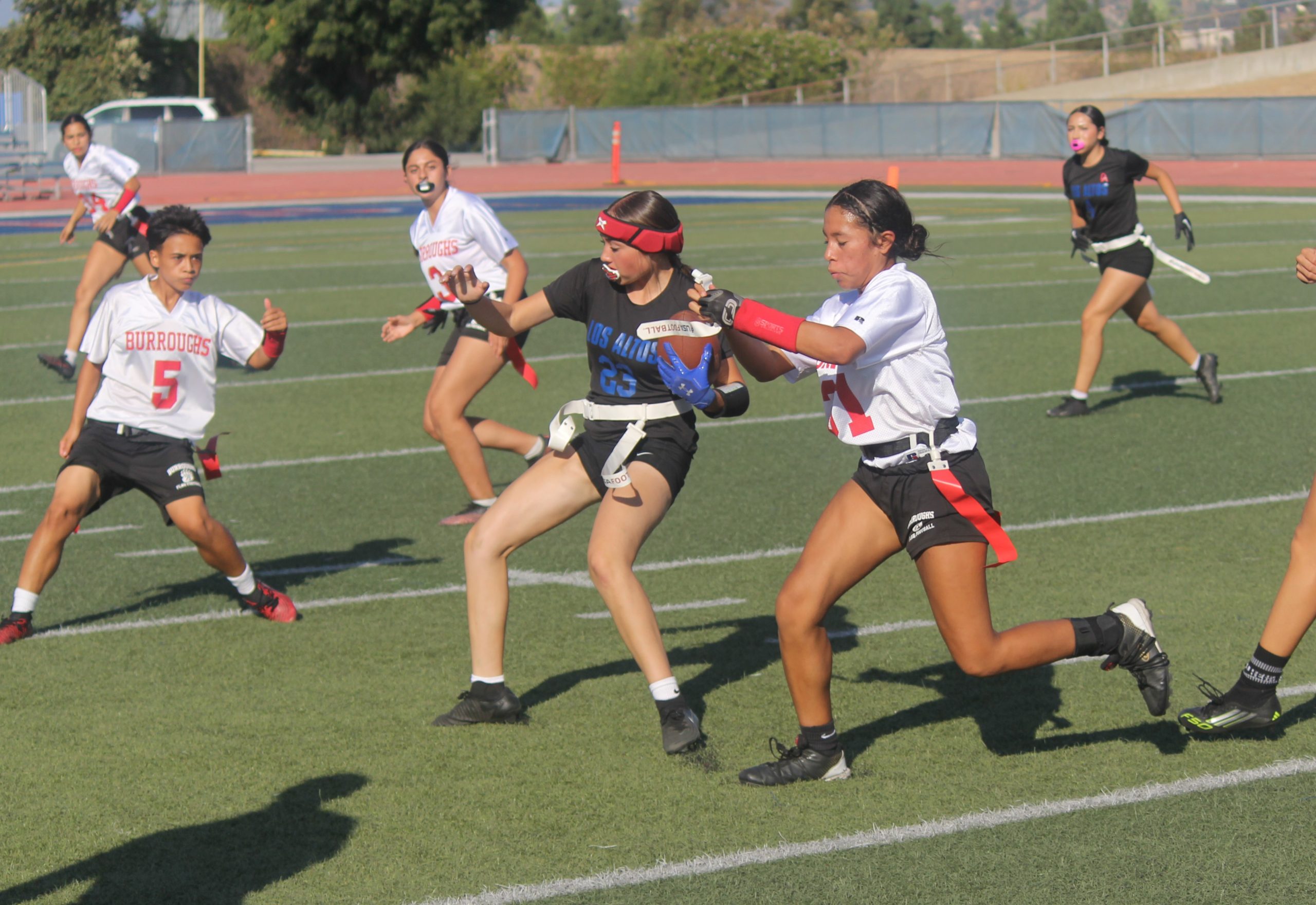 Thirty-one points were hung by the Burroughs High girls’ flag football team in the second half and proved the difference Thursday afternoon against host Los Altos in a nonleague game.