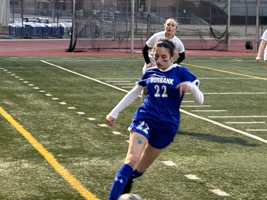 Burbank’s best scoring chance came in the 25th minute when Delilah Williams fired a shot from well outside the goal box that was caught by Burroughs goalie Sydney Evans-Armendariz.
