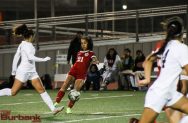 “When we have the ball a lot, they’re either going to do one of two things,” Burroughs coach Brady Riggs said of the defensive set-up. “They’re either going to press us. Try to a play a high line like Burbank did or they’re going to park the bus. Well this team parked the bus. For the first 20 minutes, I think they had maybe one player at the 30-yard line.”