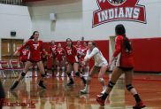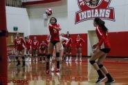 The Indians went up 20-16 on a kill by Catie Virtue. She finished with eight kills.