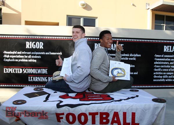 Before exhuberant family and friends on campus at JBHS, the two teammates signed their letters of intent where they will attend college and play football next fall.