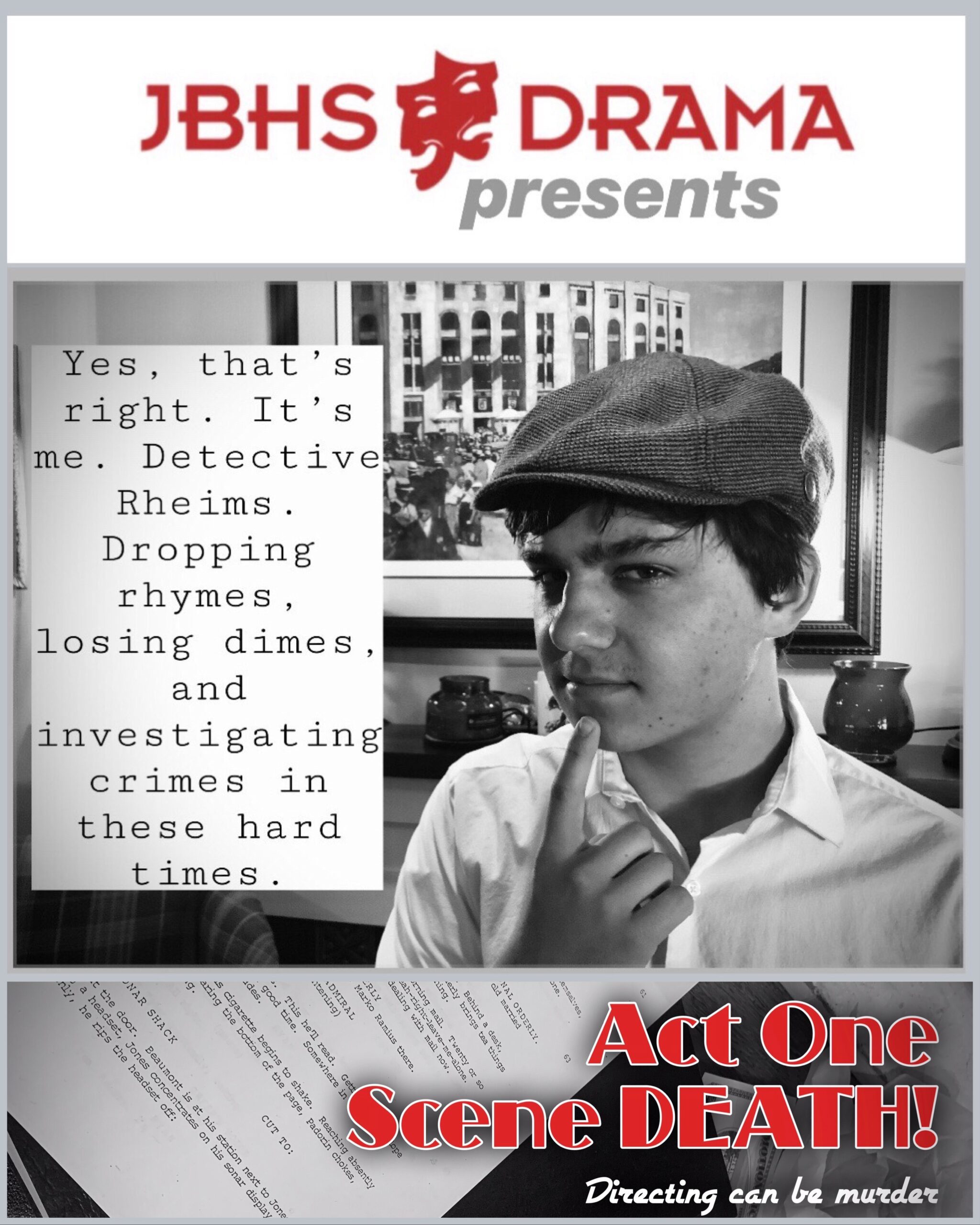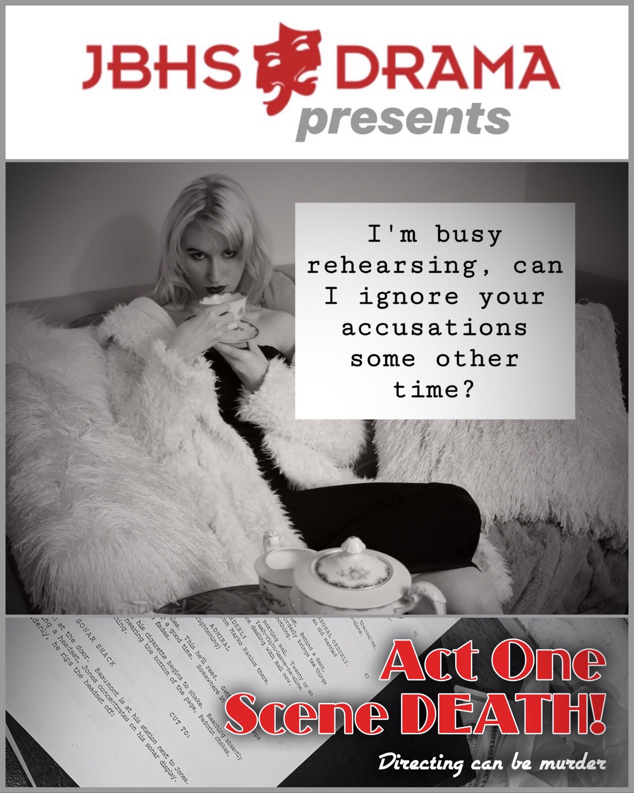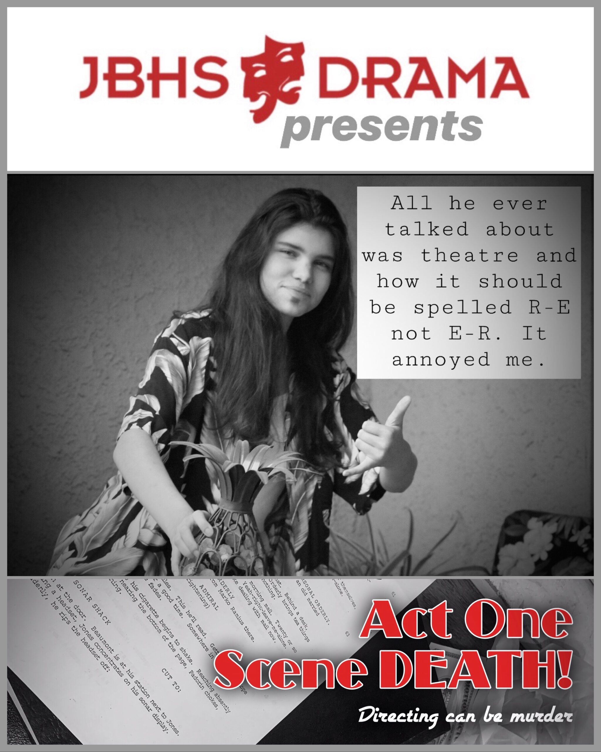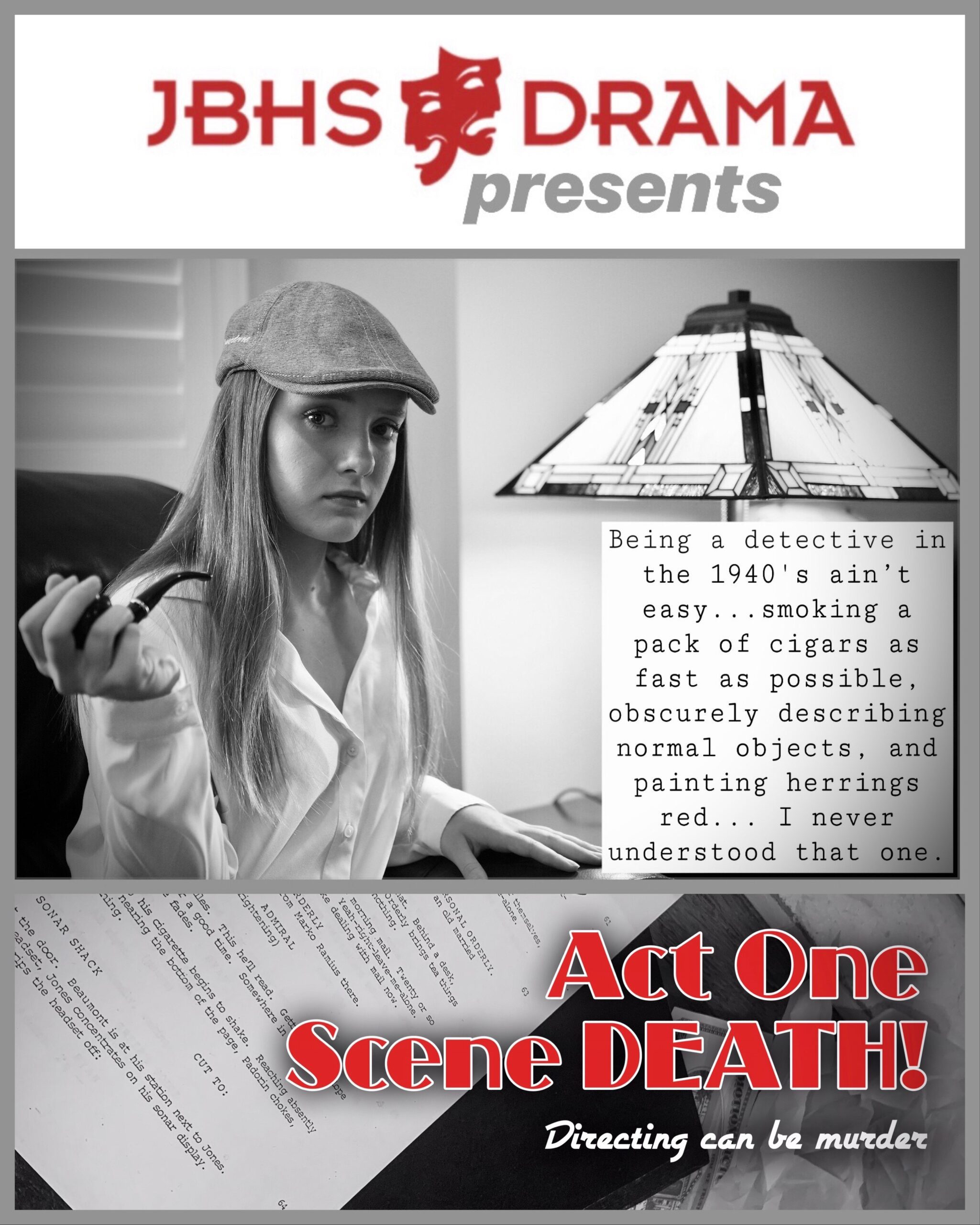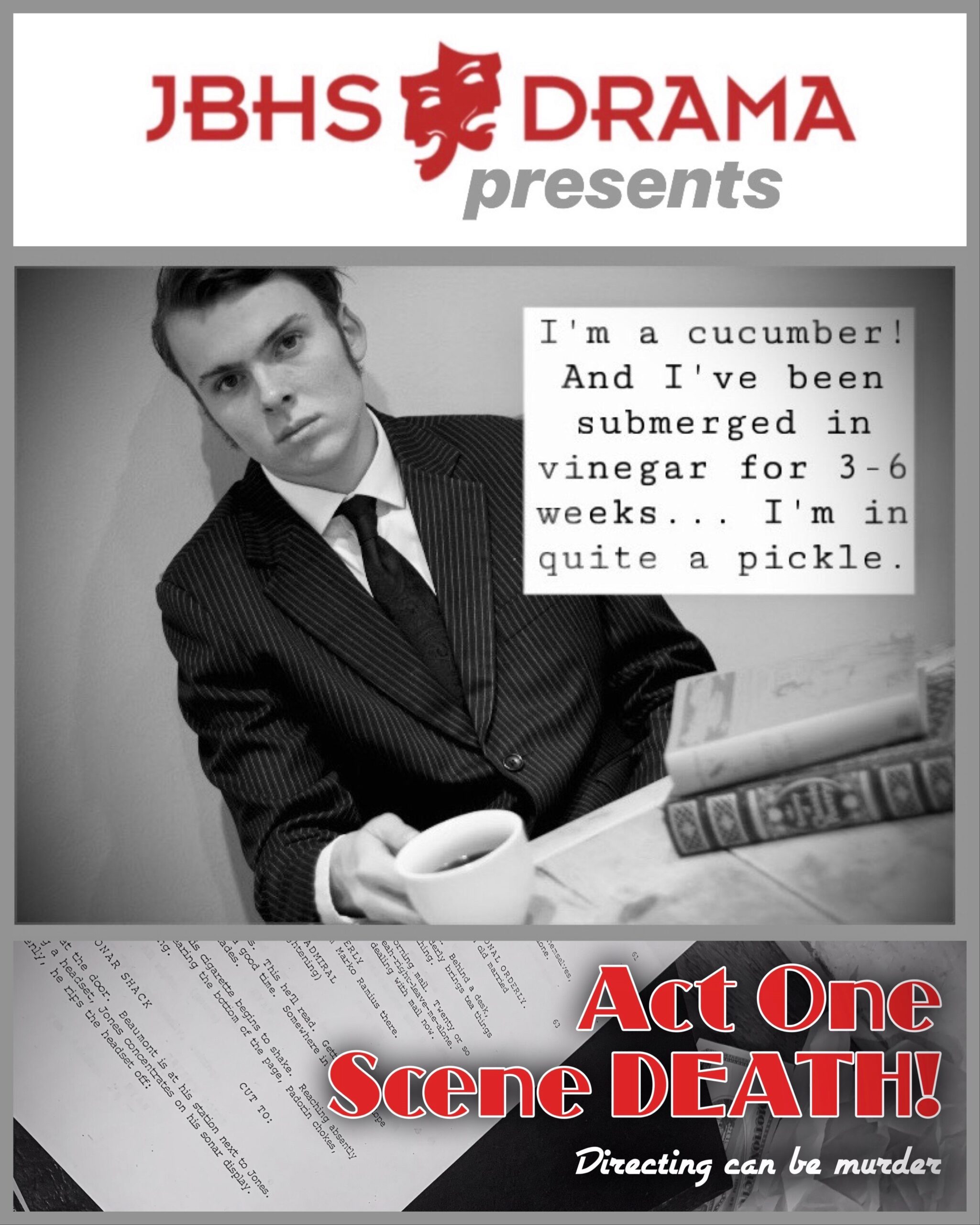 Watch JBSH Drama’s Act One: Scene Death! on Instagram/IGTV @jbhsdramabackstage and YouTube at https://youtu.be/7q0mdZoWCzw on the JBHS Drama Productions channel.
