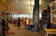 “The IKEA team spent a day here assembling the furniture and installing all shelving. IKEA even took the time to create vinyl wall appliques of our chosen words in the fonts I requested, then came and applied those as well,” explained Grene. “They were really great to work with. Scotty, our maintenance man, was also involved with the Mondrian ceiling. He helped by removing all the tiles we needed to paint. One of the wood shop students came and waxed the tabletops.”