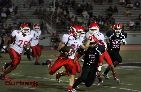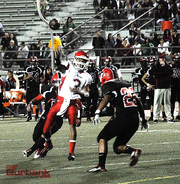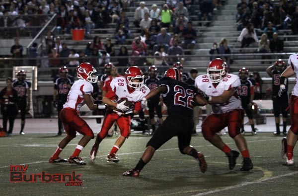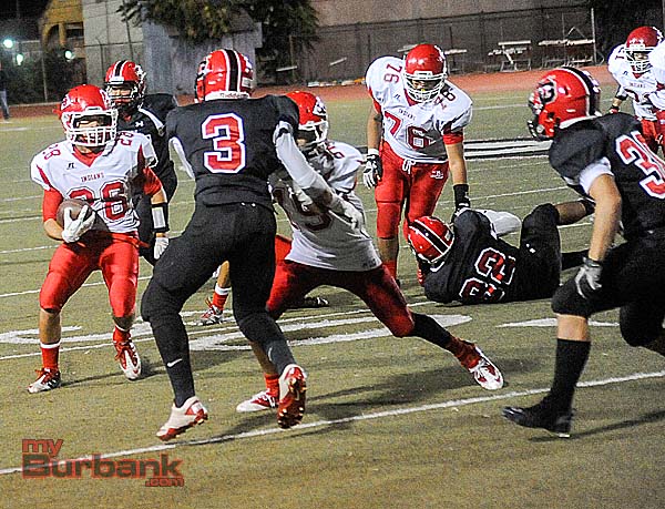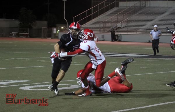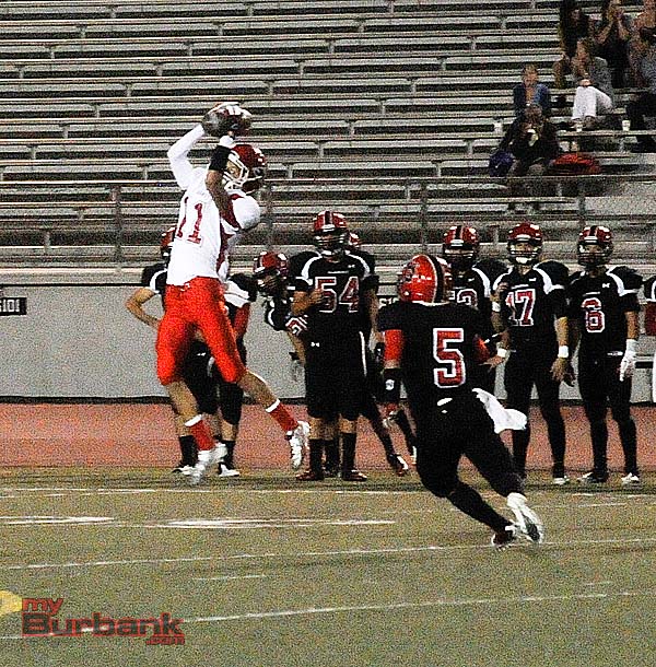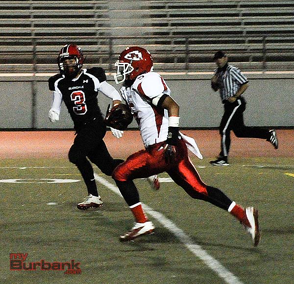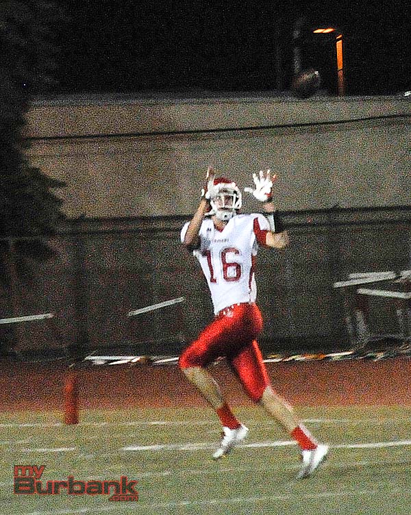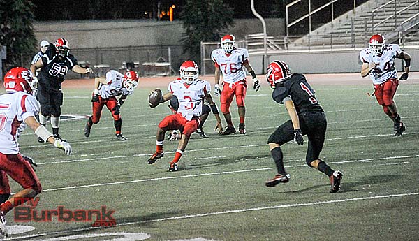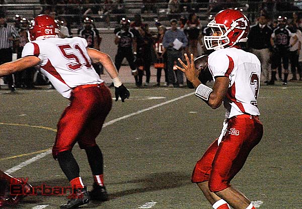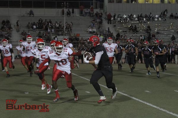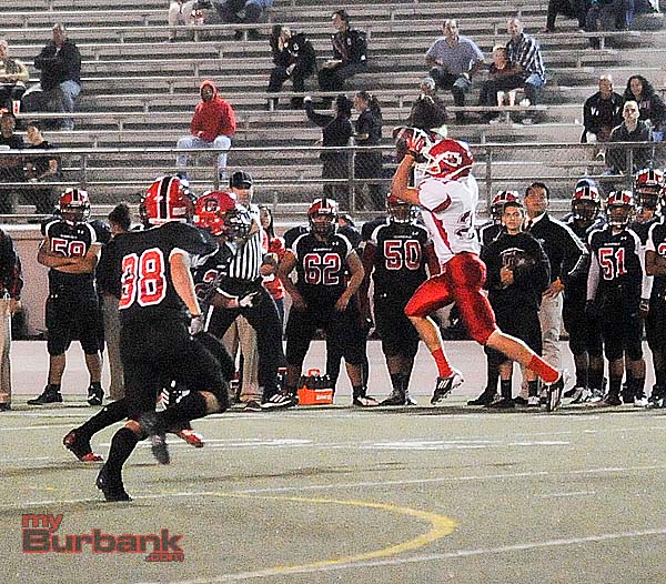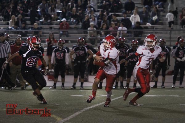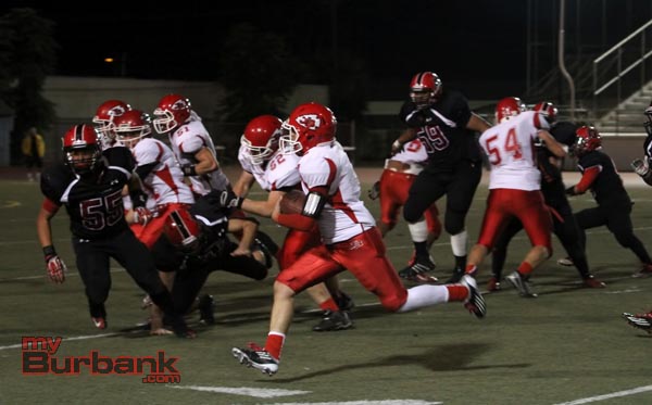 Burbank (4-0, 1-0) continued its impressive roll by dominating Arcadia, 51-14, on the road in the first league game for both teams. Quarterback Ryan Meredith completed 15 of 20 passes for 172 yards and four touchdowns, including two to Oharjee Brown (four catches for 40 yards).