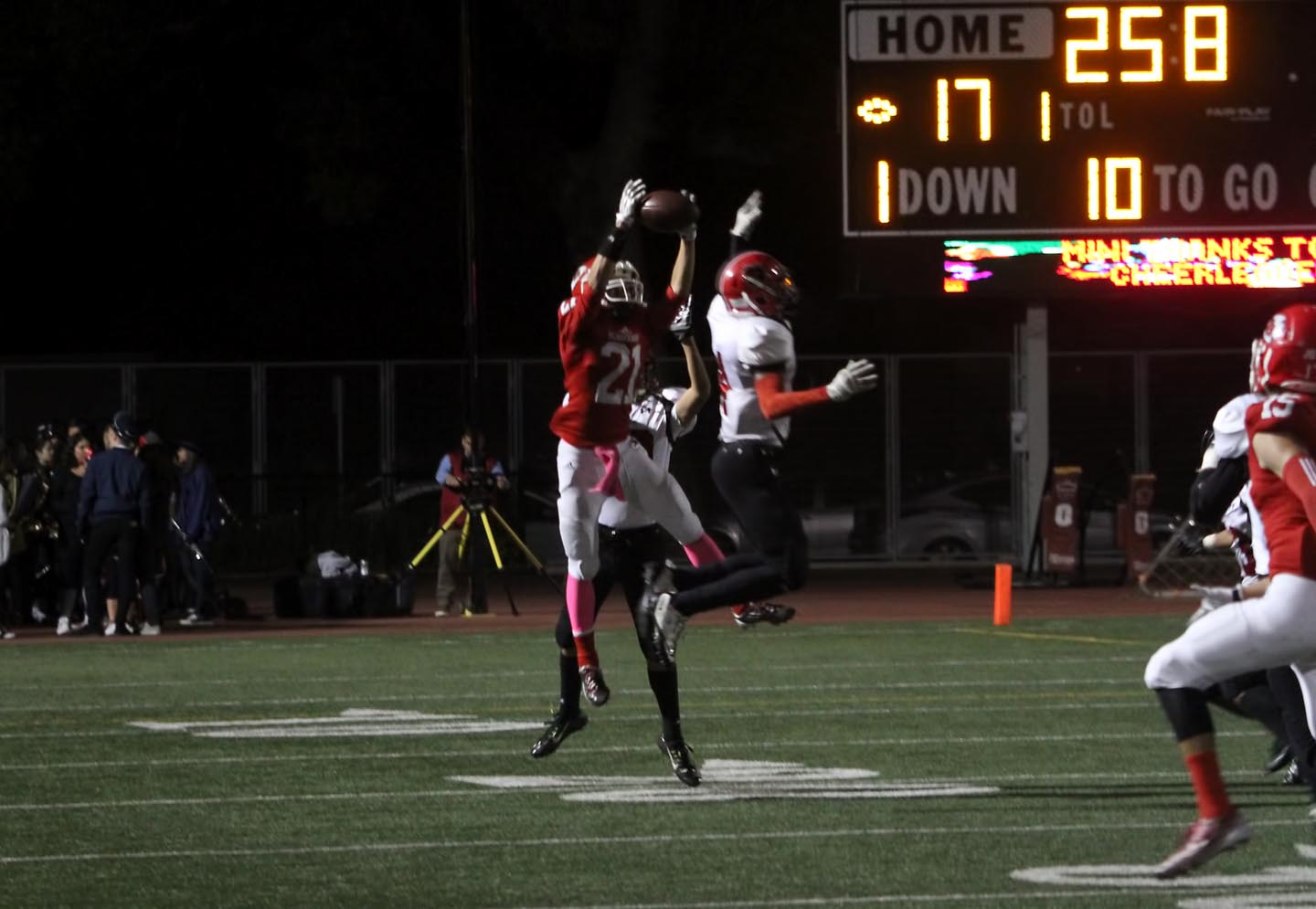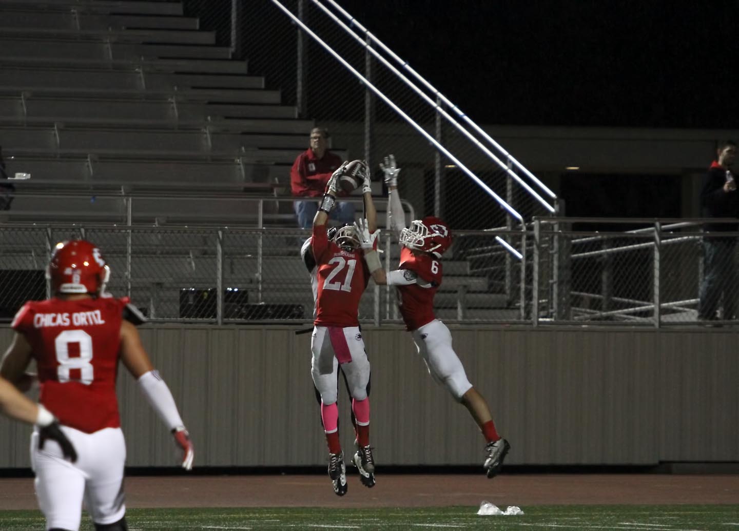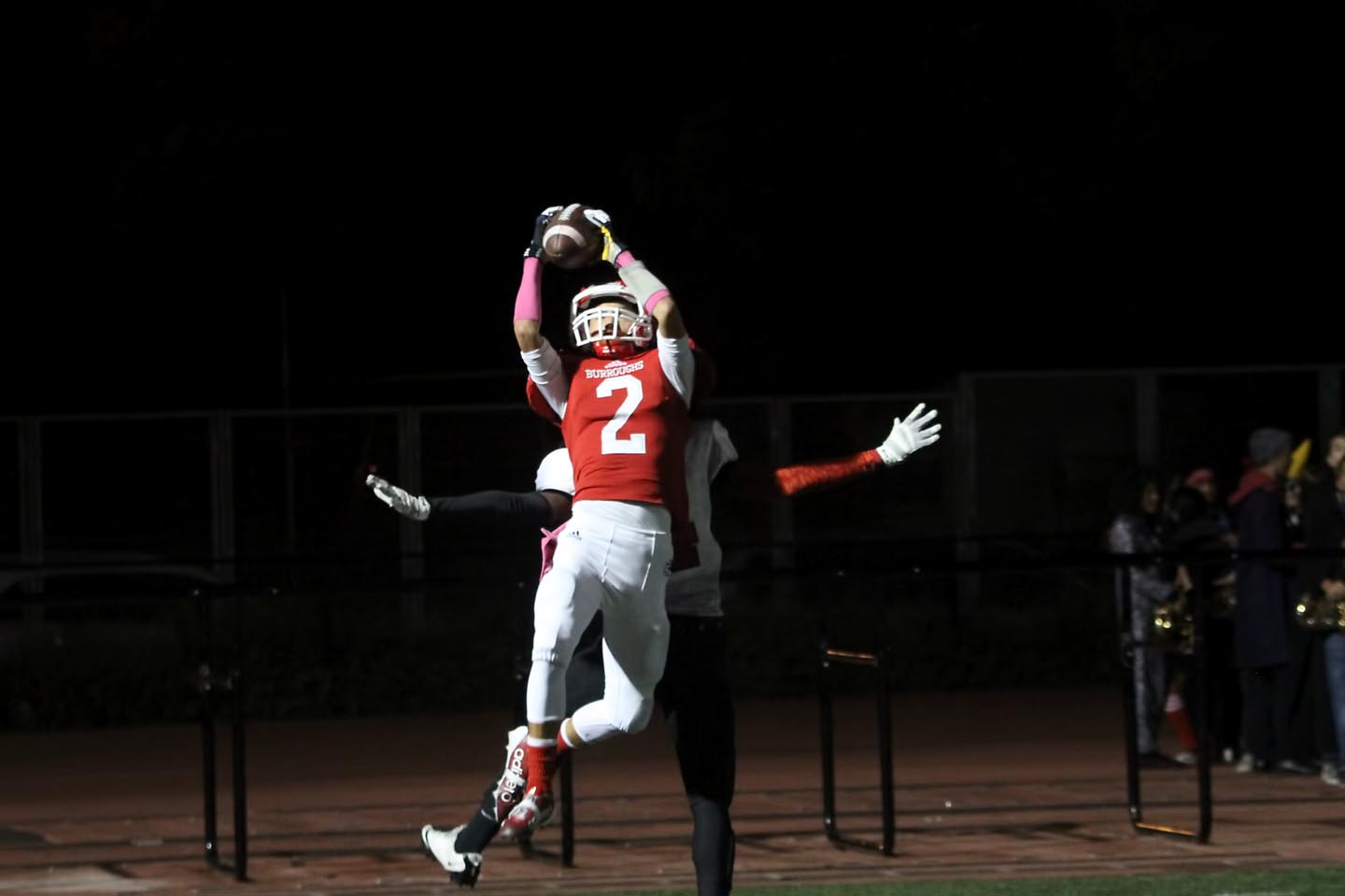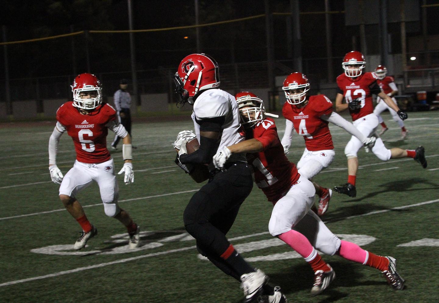 Hernandez leaped high and snared Amela’s pass giving Burroughs a 24-0 lead with six seconds left. Hernandez’s phenomenal effort earned the offensive play of the game.