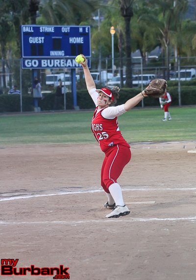 No. 5 seed Burroughs (23-4) can employ the long-ball approach or small-ball. In this case, the latter sufficed as eight batters came to the plate against Rhodes, who entered with a 3.42 ERA, and walked senior Tori Talavera, the leadoff hitter. Sophomore Lauren Lopez, who singled in the third inning, followed with a bunt and was safe, while senior Kailanie Oasay also bunted and reached base. Senior Delaney Nicol reached first base on a fielder’s choice, which made it 1-0.