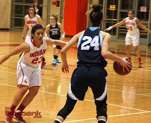 Crescenta Valley (11-6, 2-1) increased the lead back to 10 at 39-29 with less than two minutes remaining in the third quarter. Back-to-back three-pointers from Paula Galicia brought the Indians back to within four but the Falcons responded to take a 44-37 lead into the final period.