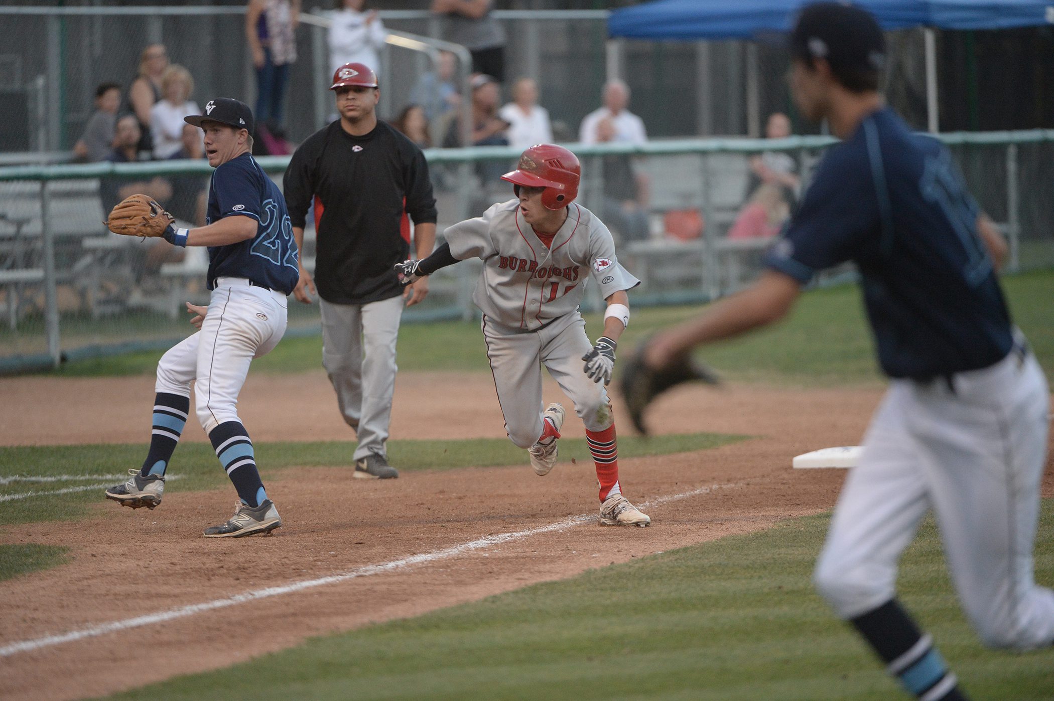 In the top of the fifth, Burroughs added two very important insurance runs. Gadsby reached his 10 inning limit for the week and moved to the outfield leaving runners on first and second.
