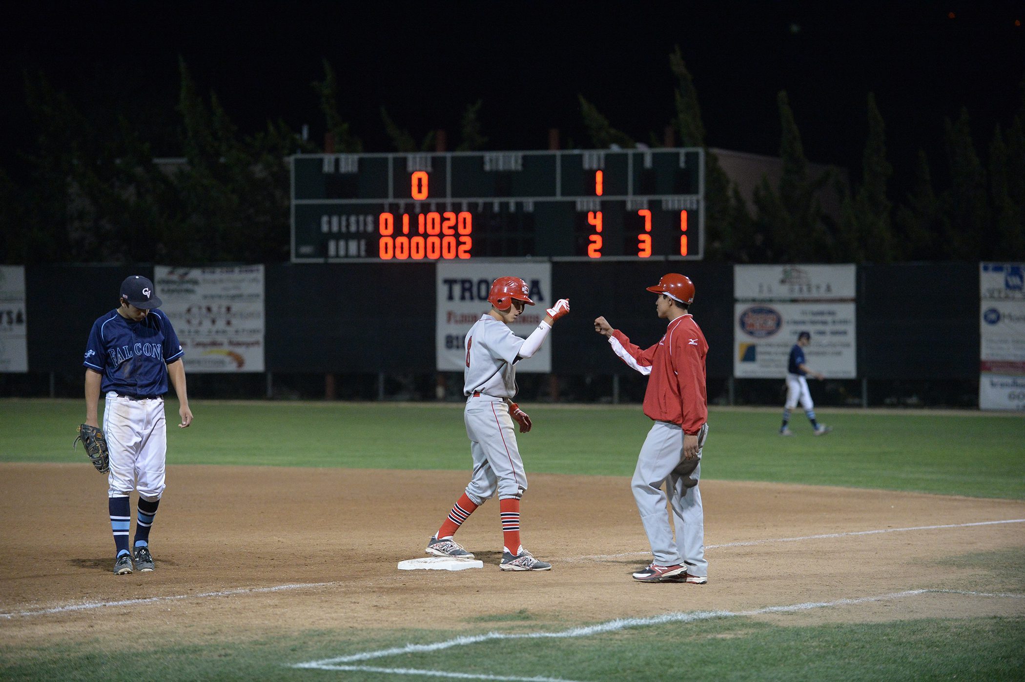 A strike three, wild pitch by Eric Ma bounced to the backstop bringing home Ryan Galan (2 for 4) and advancing Haddad to third base. Max DeAmicis followed with a sacrifice fly in foul ground plating Haddad to give the Indians a 4-0 lead on the Falcons.