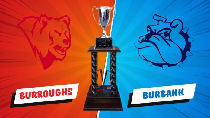 The myBurbank Cup, presented by Trophy King & Gifts, is awarded during the pre-game ceremony of the Burbank-Burroughs football game.