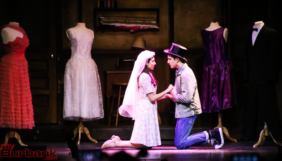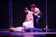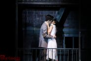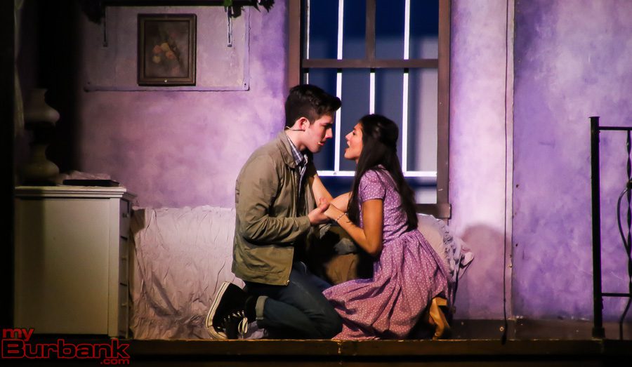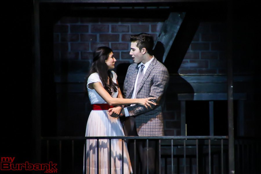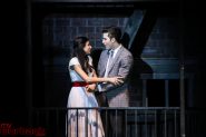 But last night was special, even for Burroughs. Arya Desai’s (Maria) angel voice just didn’t rise, it soared. And she navigated the notes with beautiful precision, as in the chromatic lead-in to “Somewhere.” Coen Sosa’s (Tony) rich tenor voice shone in solo pieces like “Maria” and also perfectly complemented Desia’s romantic soprano. Whatever the star-crossed fate their characters were to suffer, their duets were a match made in heaven.