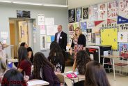 Superintendent Matt Hill was joined by Burroughs Principal Deborah Madrigal in checking out a new Freshman class at Burroughs High School. ( Photo by © Ross A. Benson)