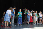 “This summer, three original BYSTI players [Harry Miller, Emma Shannon and Maddie Seiffert] returned as interns – teaching their own improv workshop rotations, helping with set design, teaching master classes and choreographing musical numbers. Watching them take on the responsibility of helping a program they have pride in, which they helped make successful, makes me extremely happy.”