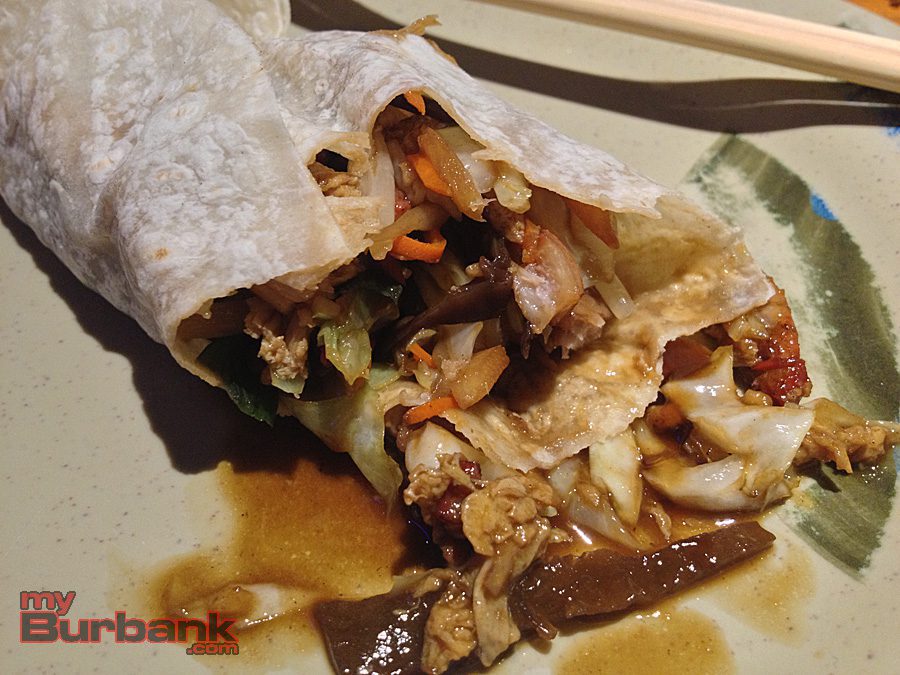 For the first time, we tried Pork Moo Shu – it was fantastic. The shredded pork and vegetable filling is served wrapped in thin crepe, like a Chinese burrito. A smoky, tangy Hoisin Plum Sauce is served on the side. We discovered that it’s better to wrap the crepe tight and not put it down until you’ve eaten the whole thing.