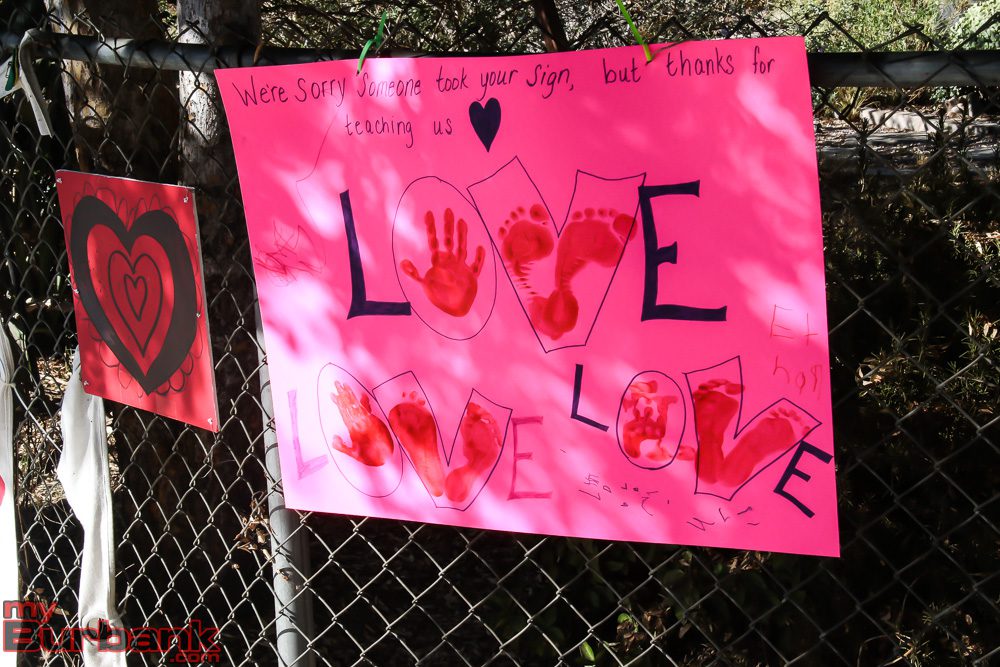 On the evening of Tuesday, November 7, Burbank resident Christy Xandrick and her daughter drove down Chandler Blvd. when they witnessed a vandal cutting down a banner outside a house at 904 N. Keystone St. which read, “Choose Love Over Hate.”
