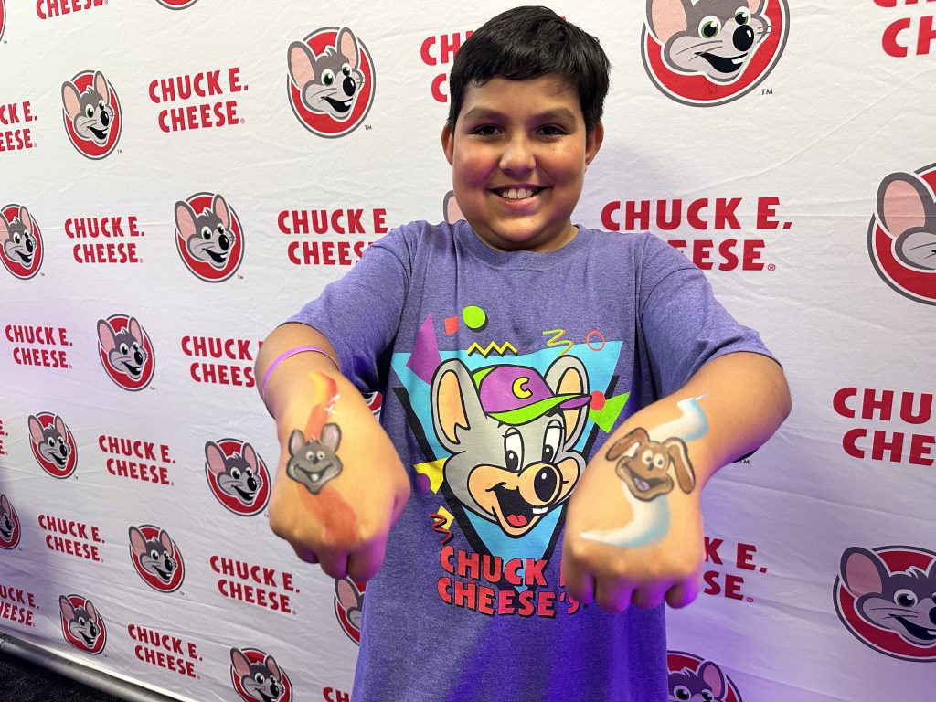 “They still have the animatronics in Northridge if you want to see them,” said Adam Langarica, a ten-year-old superfan brimming with Chuck E. Cheese trivia. His eyes sparkled as Chuck E. himself approached, accompanied by rarely seen characters like Jasper T. Jowls and Helen Henny, while Langarica proudly displayed two wrist paintings—one featuring Chuck E. Cheese and the other depicting Jasper—showcasing his deep passion for the restaurant’s iconic characters.