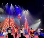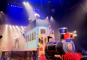 Following last year’s pirate theme, the 2019 production is an ode to the history and tradition of the golden era of the circus in honor of their fiftieth anniversary. A painting of a red and white tent strung with amber lights sets the backdrop for the show that pays homage to the late 1800s circus days.