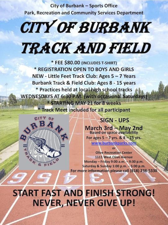 Burbank Park and Recreation is having registration currently for its Track and Field program.