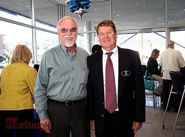 Burbank Businessman David Nos who is also a former school board member and Joe Hooven also a former school board member and share notes. Hooven is now a Sales and Community Relations Specialist for Community Chevrolet. (Photo by Ross A. Benson)