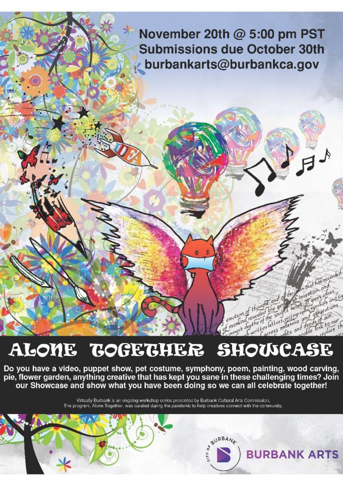 The Burbank Cultural Arts Commission calls for submissions from local creatives and crafters for the upcoming Alone Together Showcase to be held November 20. Deadline for submissions is Friday, October 30, at 11:59 p.m.