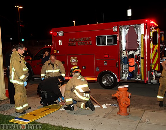 The driver was removed by officers, and he allegedly appeared very intoxicated, he was moved to a safe spot and then was treated by Burbank Paramedics who transported him to Saint Joseph Medical Center, with his hands handcuffed to a stretcher.