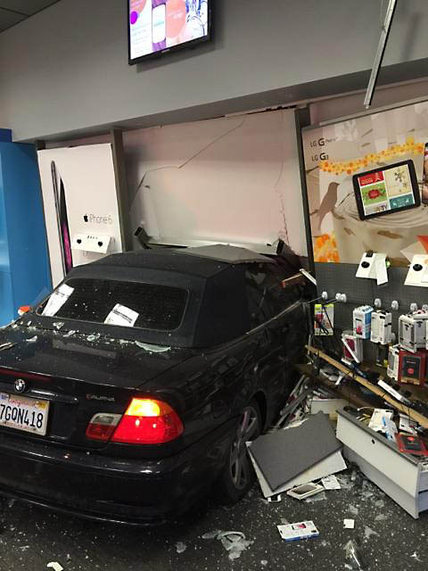Employees evacuated the store when the wall came crashing in and the front of a BMW appeared.