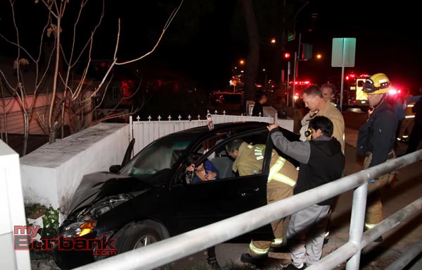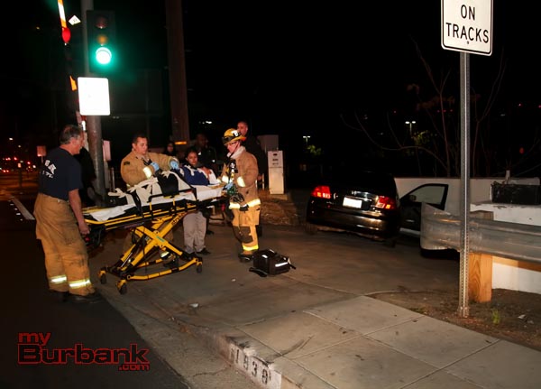 Burbank Police were only a block and half away arrived on scene within seconds. Burbank Paramedics responded and treated both patients, who complained of pain from seat-belts and were transported to a local hospital to be checked out.