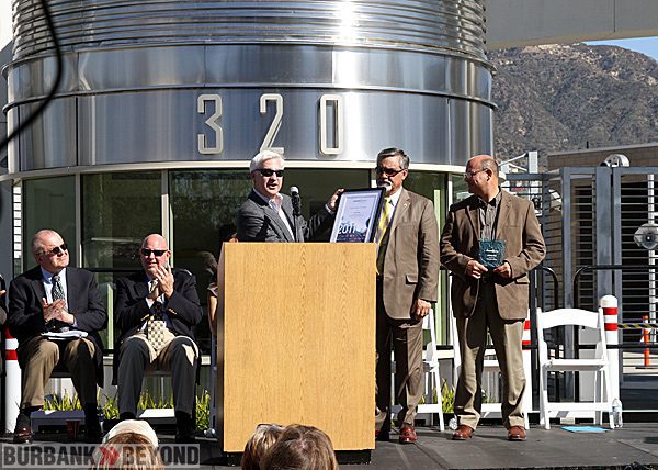 Burbank Water & Power General Manager Ron Davis was joined by Burbank Mayor Jess Talamantes, City Manager Mike Flad, and executives from the MWD (Metropolitan Water District) and the U.S. Department of Energy. Burbank received an award for being one of the cities that conserved a large amount of water.