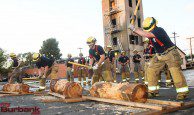 The class put on a demonstration following the indoor ceremonies of a couple of the visual examples of a car extraction, High rescue rescue, auto fires, repealing, and yelling loud as emergencies scenes are very noisy.