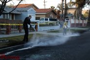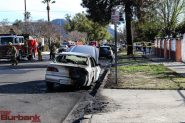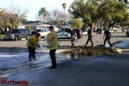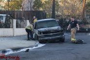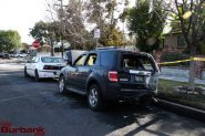 According to Battalion Chief John Owings P.I.O of the Burbank Fire Department, “The resulting flammable liquid fire extended to eight vehicles parked on Lincoln street destroying three and damaging five others. Crews quickly extinguished the multiple fires within 10 minutes and stopped the flow of the flammable liquid preventing it from flowing into the storm drain.