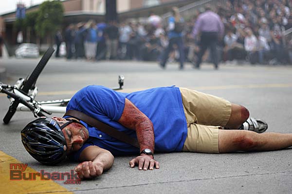 The program was then in two parts. The first part on Wednesday closed down Third Street and reenacted a car crash with Burbank High students. Senior Kyle Alvarez was “drunk” and caused the crash, which ended up “killing” two students, injuring two more, and injuring a teacher on his bicycle as well.