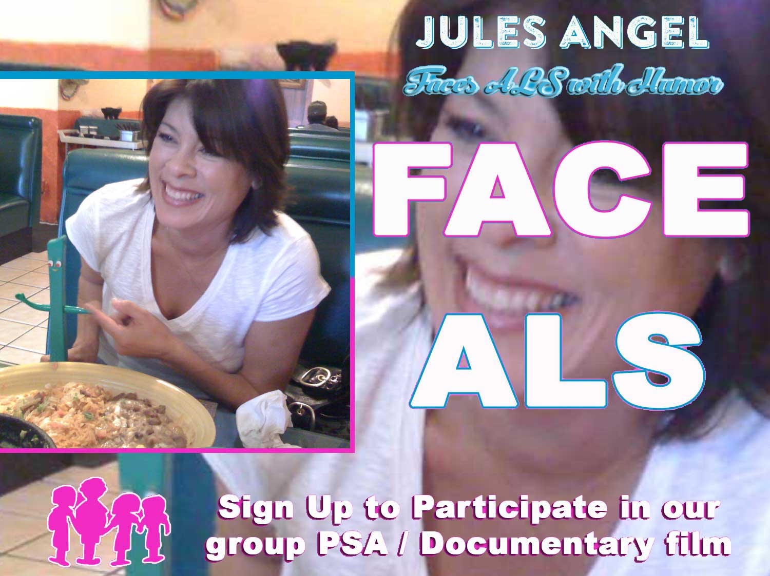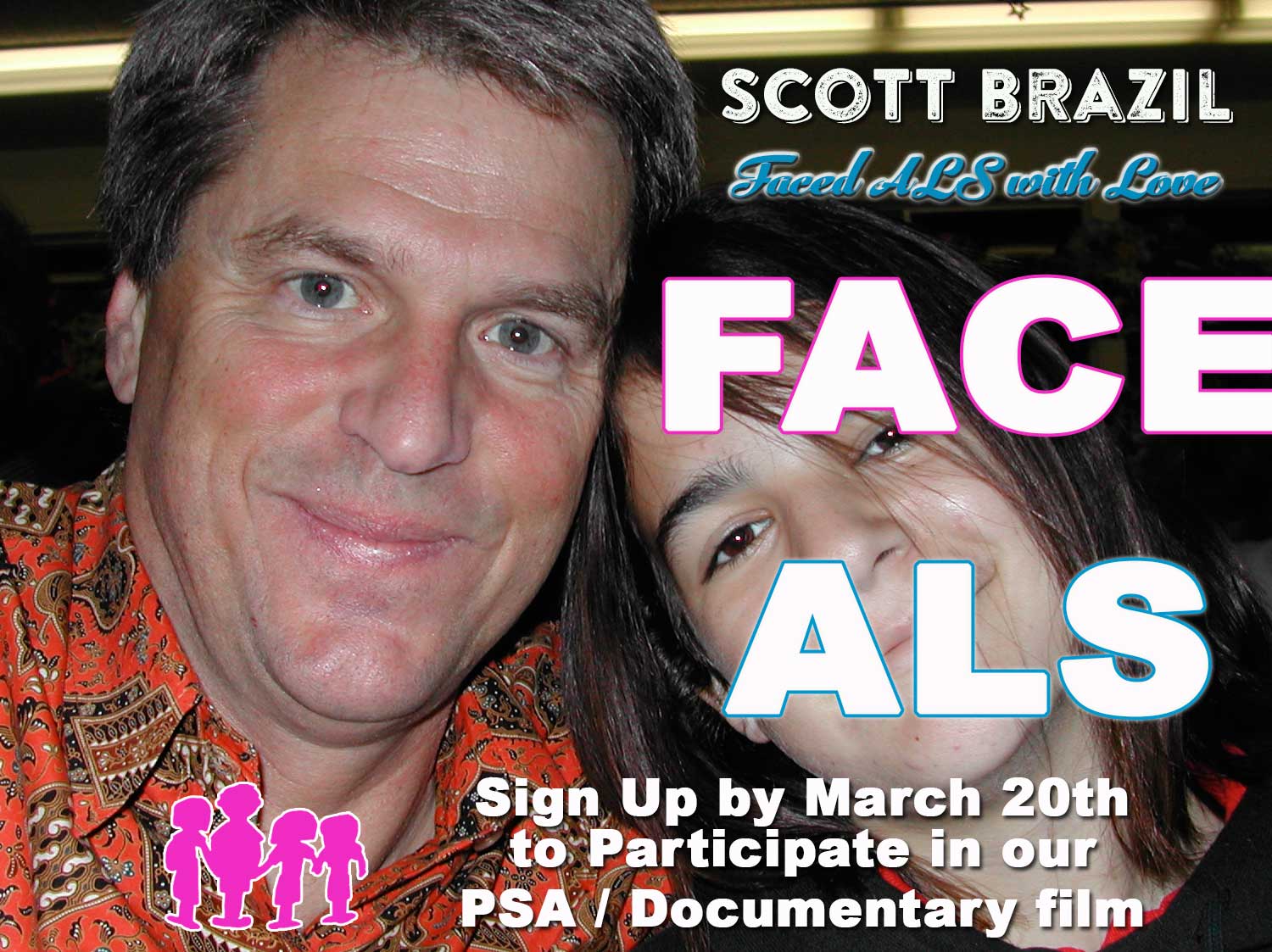 The Face ALS project includes the feature-length documentary due to be released in March 2015 and six Public Service Announcements (PSAs) debuting in May 2014. Burbank resident Jon Huntley has been hard at work directing and editing the PSAs to help raise awareness and encourage funding for the documentary.