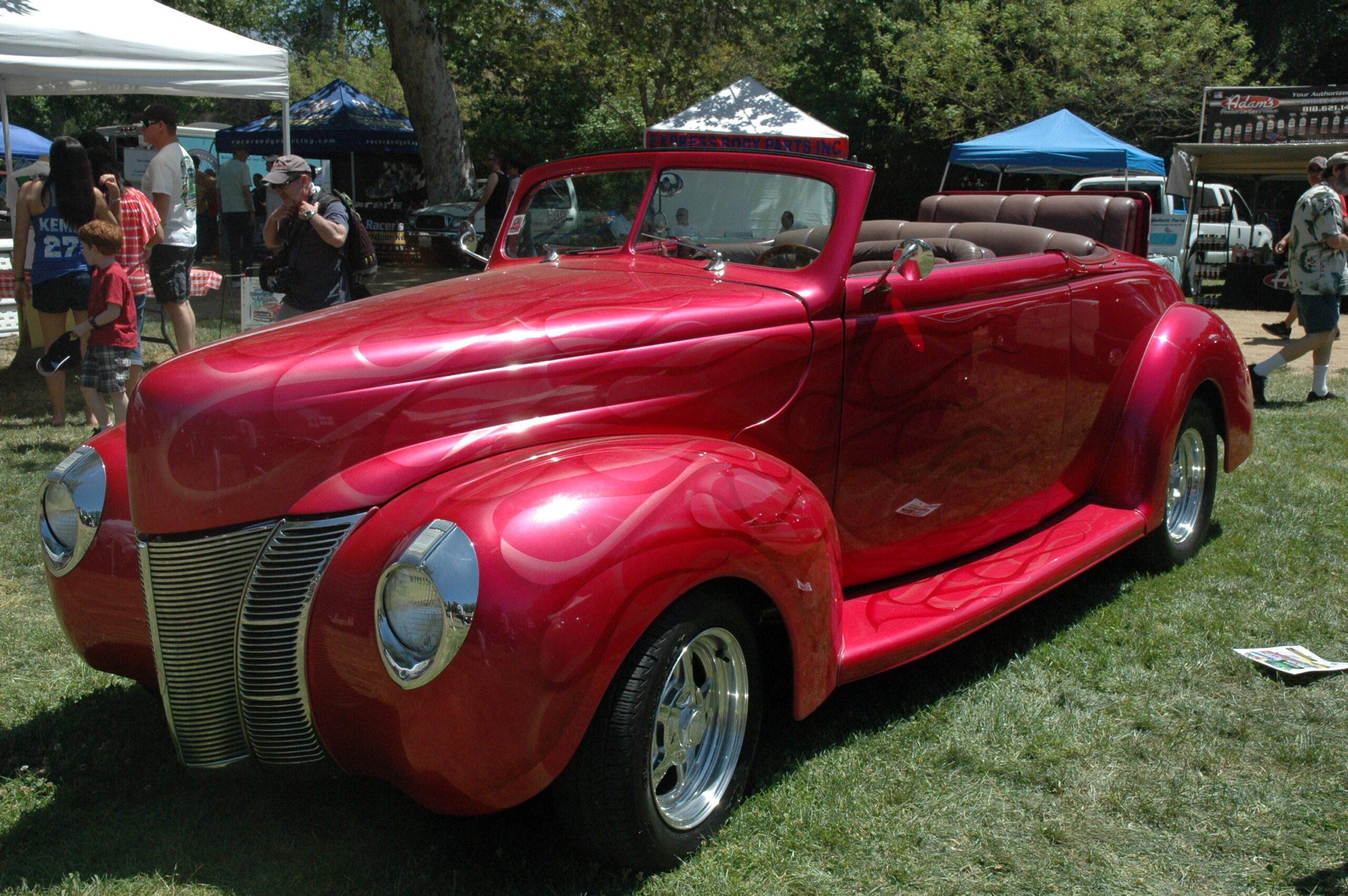 Lori Wilcox’s 1944 convertible with a rumble seat was among the 300 vehicles displayed. It’s a bright pink with flames painted on the hood, front fenders and doors. She’s been showing the car for 10 years, she said, as a way to share a hobby with her dad who owns a woody.