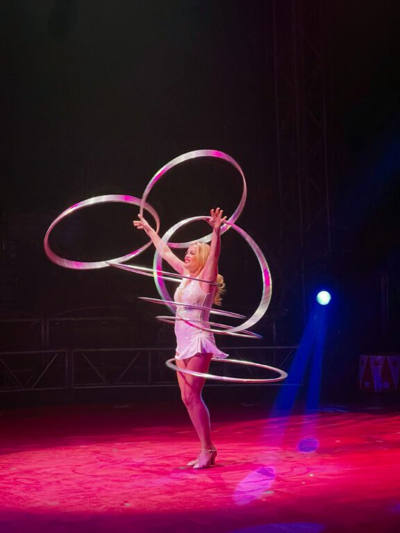 Before construction and building projects, Circus Vargas always made a stop on their California tour in Burbank. They would set up off Front street and we were so lucky to have the circus coming right to us in our “backyard.” Without the space for the show, the circus has continued on and found a home in Arcadia for the next week. Right inside the Westfield Santa Anita parking lot of Arcadia, a blue and yellow big top with American flags flapping in the breeze can be seen. Inside the walls of the tent is an entertainment experience you will never forget.