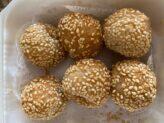 The sesame balls, filled with sweet red bean paste, are lightly fried and absolutely perfect for a quick snack. The dough is nicely chewy outside and airy inside and properly complemented by the right amount of red bean paste.