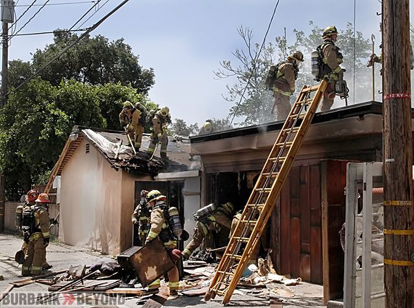 Burbank, along with Glendale firefighters, responded to a reported garage fire in the 300 block of W. Cedar Avenue Saturday morning. Upon their arrival they observed heavy smoke coming from a detached