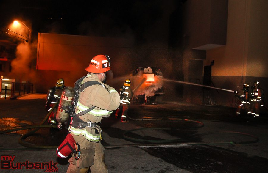 Burbank fire responded a full assignment to a bus that had caught fire in an alley in the 300 block of East Angeleno Thursday morning at 12:05 am.