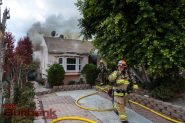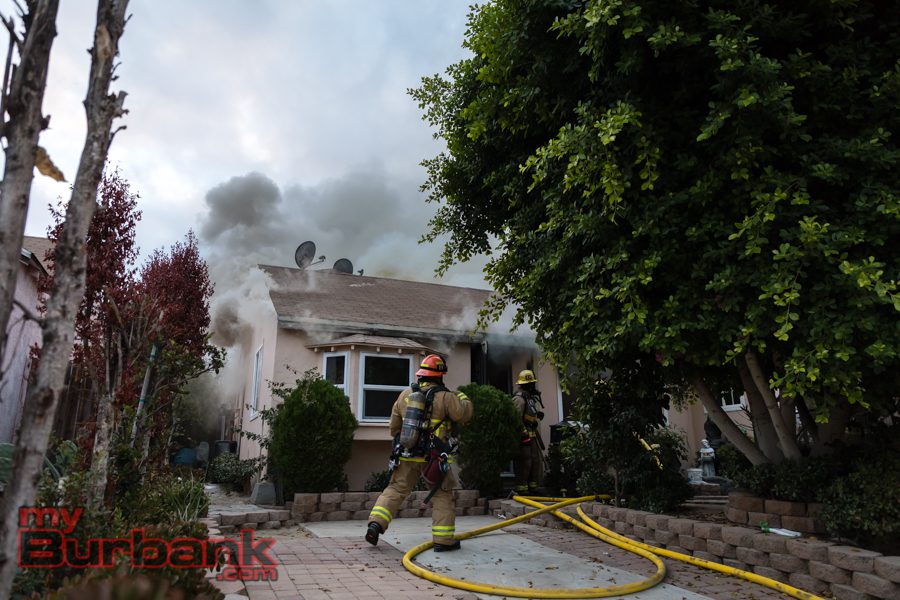 Burbank Police officers on patrol near Robert Lundgren Park noticed smoke a couple of blocks away and responded finding upon their arrival, a one-story house with heavy fire in the front room.