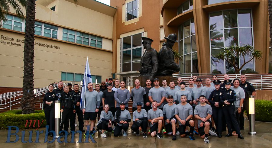 After the ceremony, the Burbank Police Running Team, who makes the famous law enforcement Baker to Vegas run each year, donned Matthew Pavelka shirts and ran as a unit back to the police station during a light rain.