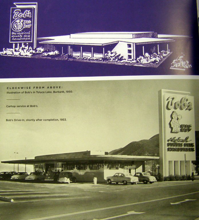 Bob began to expand his idea and opened a Bob’s at 624 S. San Fernando Road in Burbank. It was a small place with a tall neon sign featuring a character known as Big Boy eating a hamburger. This Bob’s was remodeled to the 1950’s Googie Architecture style of Coffee Shops of the time.