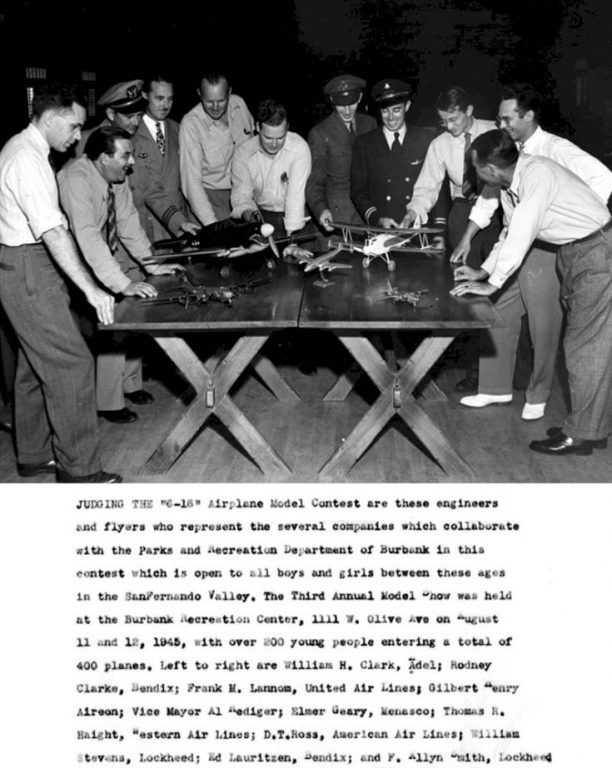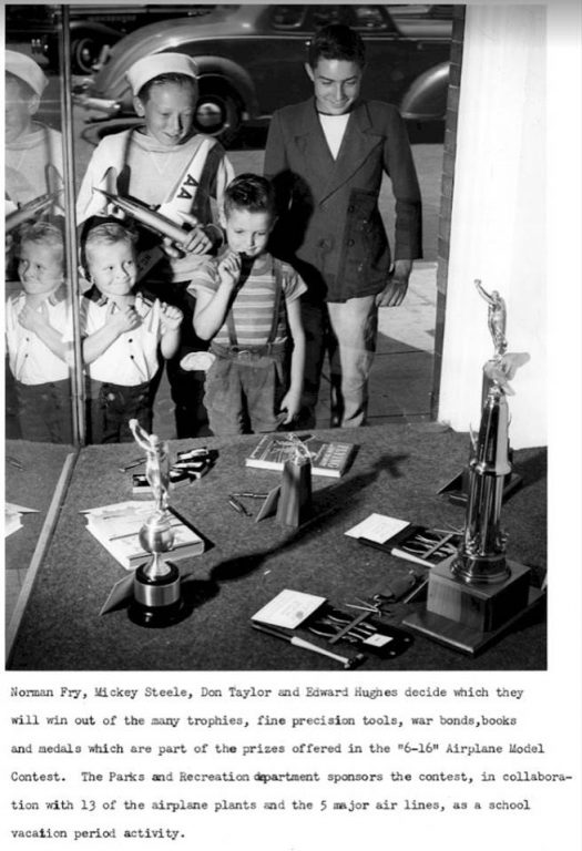 In 1944 and 1945 Burbank Park and Recreation Dept. hosted a model airplane building contest for youth 6 to 16 years of age.