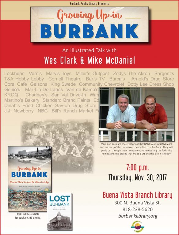 Slowly fading with the city’s ever-changing landscape, the places and people of Burbank’s past tell a vibrant story. Before the arrival of Warner Bros. and Walt Disney, First National Pictures built its original studio lot on Olive Ave in 1926. For over sixty years, Lockheed Aircraft Company produced some of the nation’s best airplanes where the massive Empire Shopping Center now stands. Heavyweight champion James Jeffries turned his Burbank ranch home and barn into a beloved landmark and boxing venue. Inventor Joseph Wesley Fawkes’s scheme to build a monorail to Los Angeles became a local laughingstock. Diehard Burbankers Wes Clark and Michael Mc Daniel collect these and many more forgotten local stories where they can finally be found.
