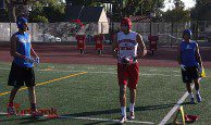 Burbank quarterback Ryan Meredith looked much improved from a season ago. He has bulked up in the weight room and demonstrated a lot of arm strength and maturity in his decision-making. Standout running back James Williams dominated with his spectacular catches and crisp route running. James Pendleton also looked solid while Seby Santoro was hindered by a sore ankle.