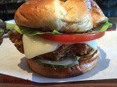The Crispy Chicken Sandwich ($13) is slightly spicy and juicy. A fried chicken breast is topped with Swiss cheese, lettuce, tomato, pickles and a tangy sweet honey mustard dressing on a potato bun.