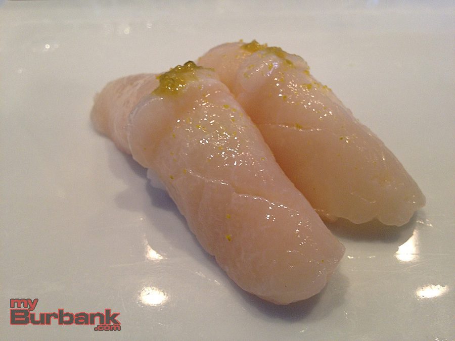 - Sushi Yuzu Jumbo Scallop, Muki-Hotate, tastes like the ocean, with a touch of wasabi. (Photo By Lisa Paredes)